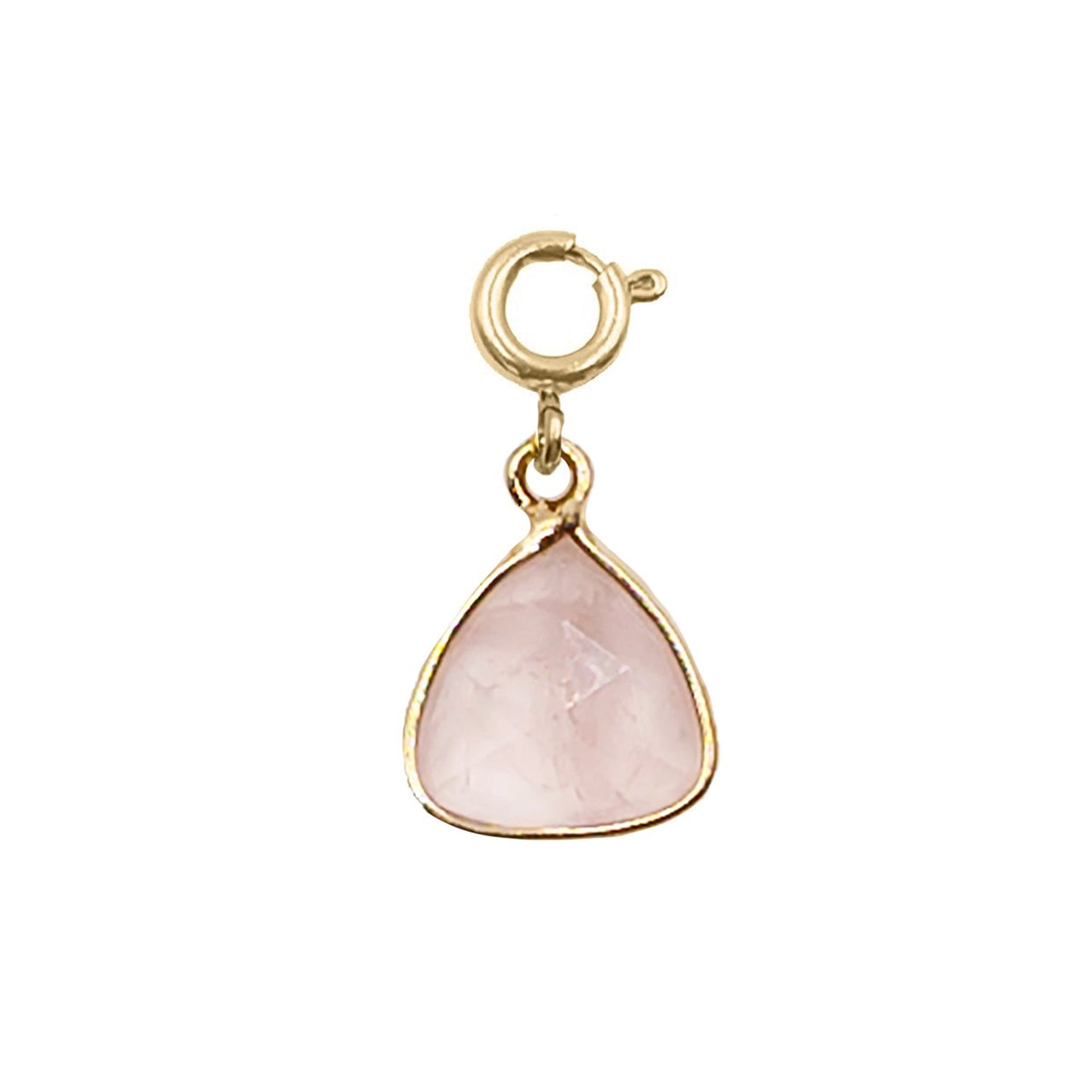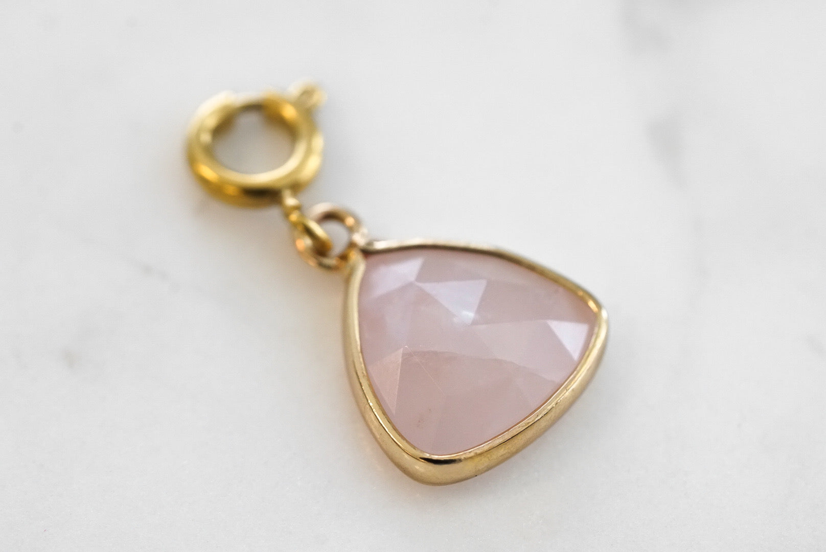 Gold And Pink Geometric Natural Stone Crystal Gemstone Reuleaux Hypoallergenic Nickel Free Charm Accessory. Custom Raw Natural Stone Accents And Designed With Love In Texas. Size 1 Inch Length x 0.50 Inch Width With Custom Sizing Available On Select Pieces.