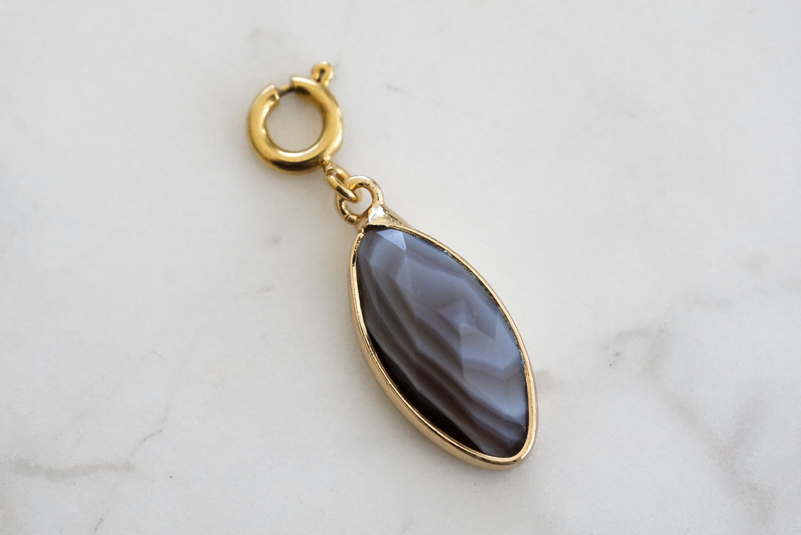 Gold And Gray Diamond Geometric Natural Stone Crystal Gemstone Hypoallergenic Nickel Free Charm Accessory. Custom Raw Natural Stone Accents And Designed With Love In Texas. Size 1 Inch Length x 0.25 Inch Width With Custom Sizing Available On Select Pieces.