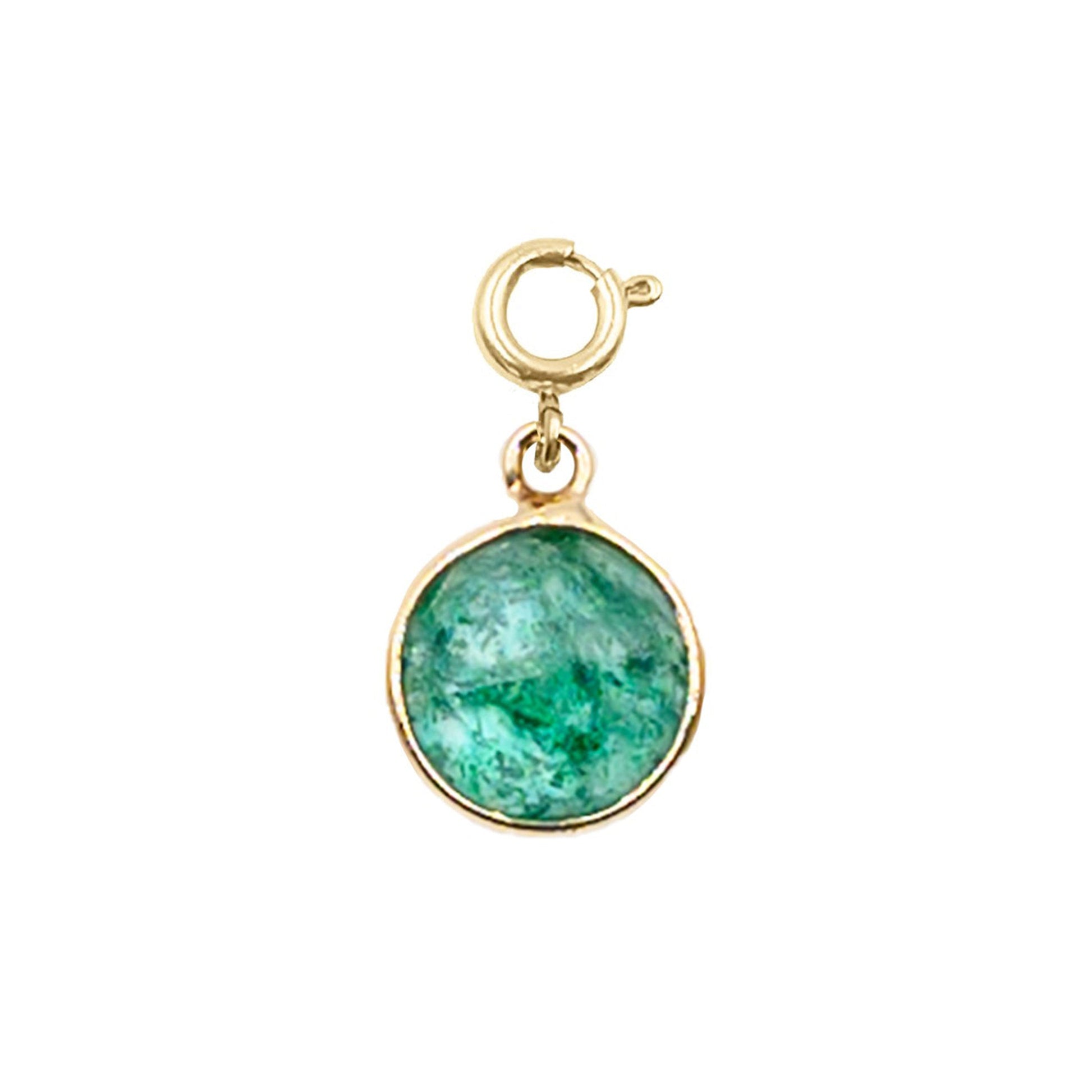 Gold And Green Circle Disc Natural Stone Crystal Gemstone Hypoallergenic Nickel Free Charm Accessory. Custom Raw Natural Stone Accents And Designed With Love In Texas. Size 0.75 Inch Length x 0.50 Inch Width With Custom Sizing Available On Select Pieces.