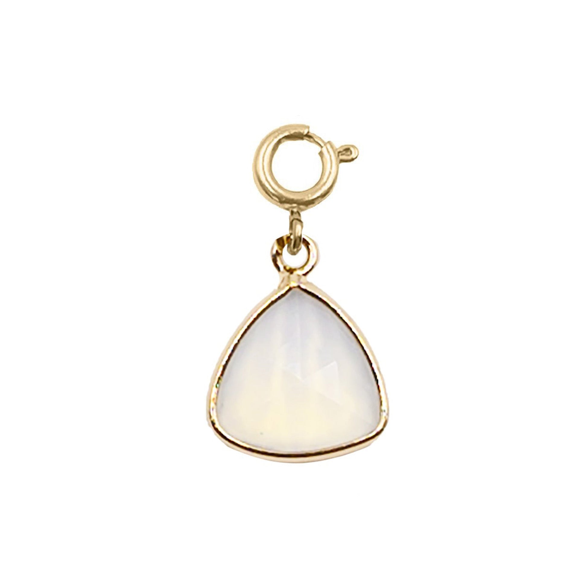 Gold And White Geometric Iridescent Natural Stone Crystal Gemstone Reuleaux Hypoallergenic Nickel Free Charm Accessory. Custom Raw Natural Stone Accents And Designed With Love In Texas. Size 1 Inch Length x 0.50 Inch Width With Custom Sizing Available On Select Pieces.