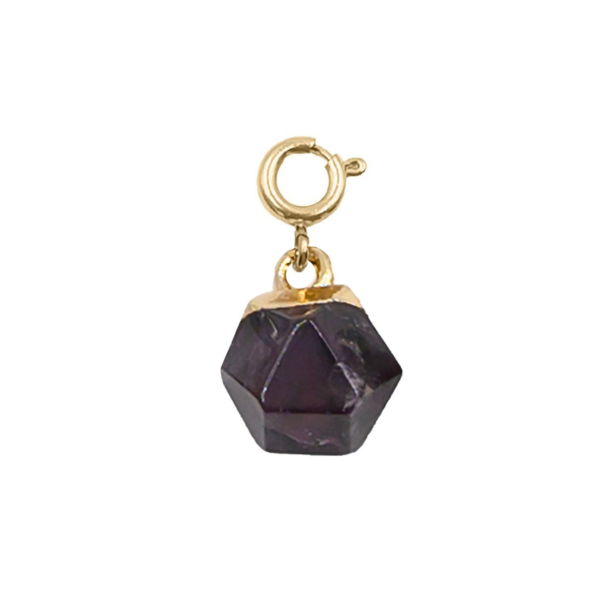 Gold And Purple Geometric Icosahedron Natural Stone Crystal Gemstone Hypoallergenic Nickel Free Charm Accessory. Custom Raw Natural Stone Accents And Designed With Love In Texas. Size 0.75 Inch Length x 0.25 Inch Width With Custom Sizing Available On Select Pieces.