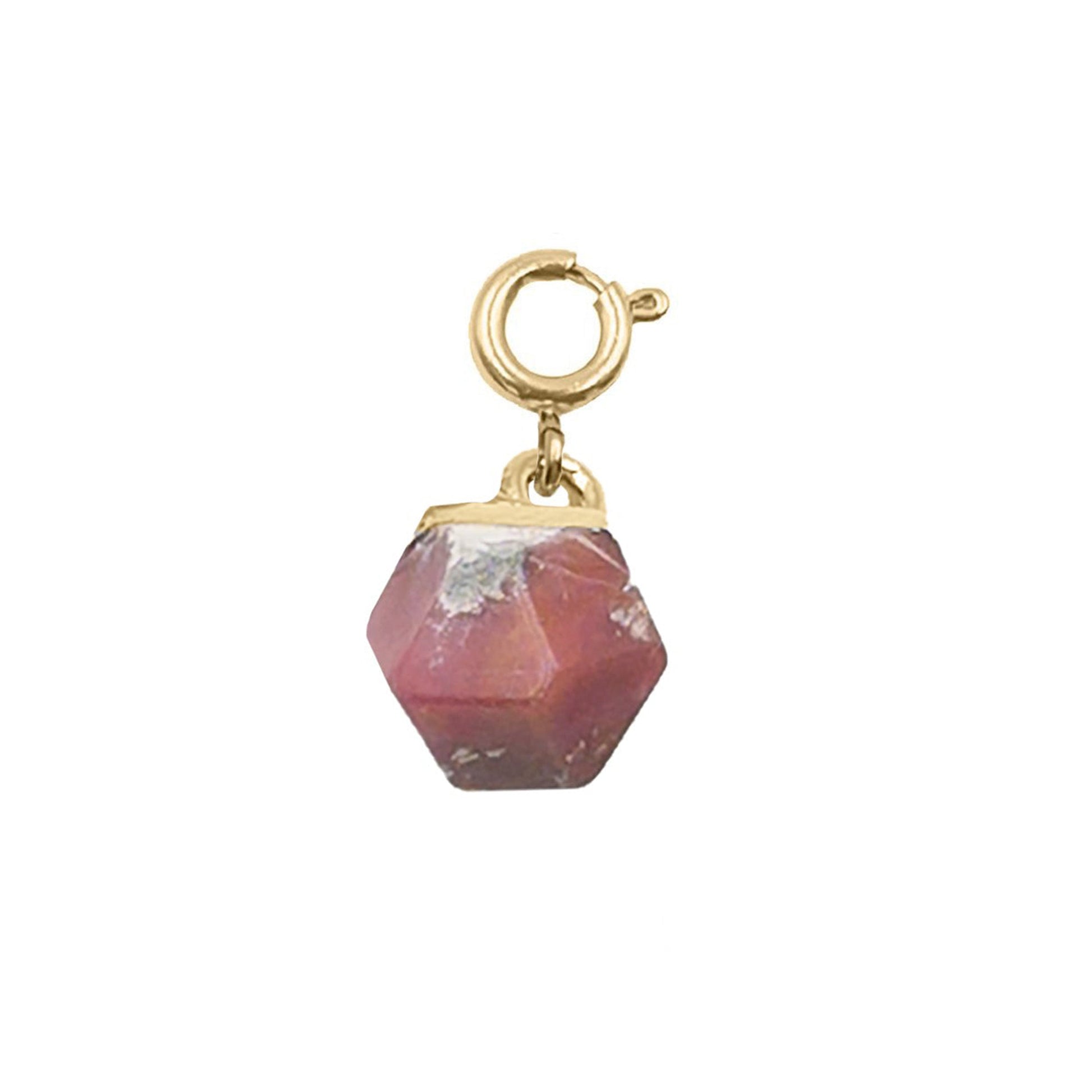 Gold And Pink Geometric Icosahedron Natural Stone Crystal Gemstone Hypoallergenic Nickel Free Charm Accessory. Custom Raw Natural Stone Accents And Designed With Love In Texas. Size 0.75 Inch Length x 0.25 Inch Width With Custom Sizing Available On Select Pieces.