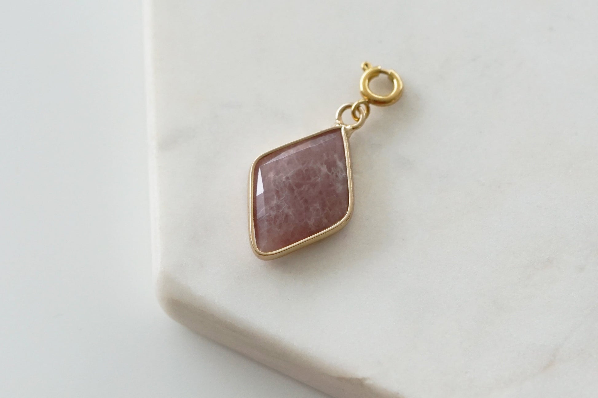 Gold And Red Diamond Geometric Natural Stone Crystal Gemstone Hypoallergenic Nickel Free Charm Accessory. Custom Raw Natural Stone Accents And Designed With Love In Texas. Size 1.25 Inches Length x 0.50 Inch Width With Custom Sizing Available On Select Pieces.