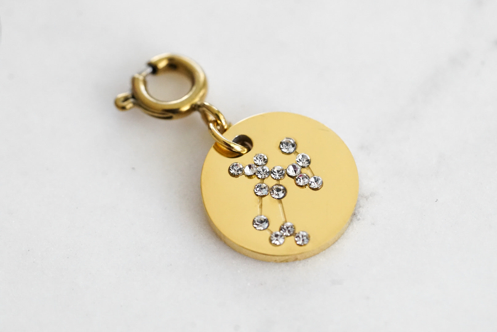 Gold And White Coin Constellation Astrology December Disc Galaxy November Zodiac Hypoallergenic Nickel Free Charm Accessory. Custom Zircon Gemstones Accents And Designed With Love In Texas. Size 0.50 Inch Diameter With Custom Sizing Available On Select Pieces.