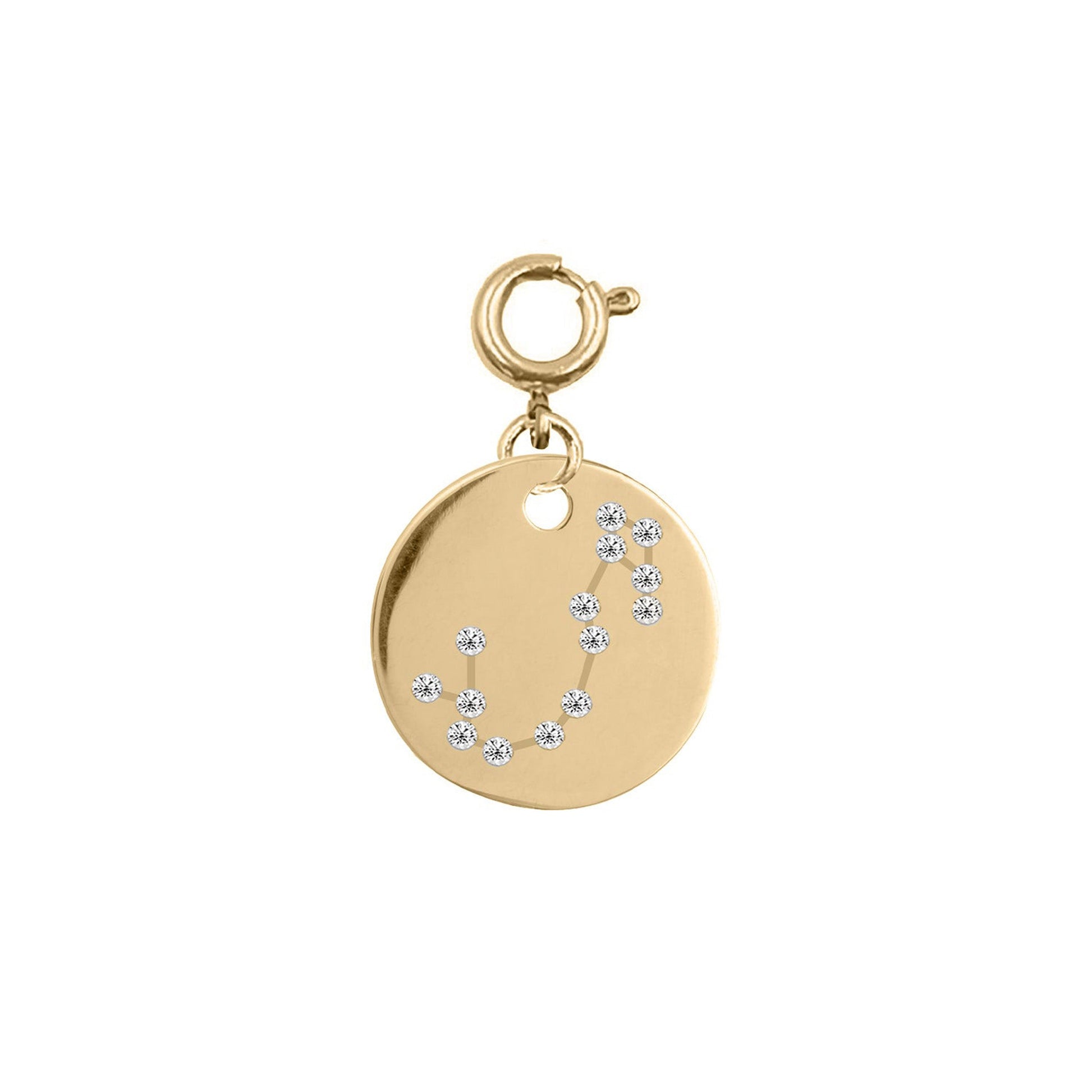 Gold And White Coin Constellation Astrology Disc Galaxy November October Zodiac Hypoallergenic Nickel Free Charm Accessory. Custom Zircon Gemstones Accents And Designed With Love In Texas. Size 0.50 Inch Diameter With Custom Sizing Available On Select Pieces.