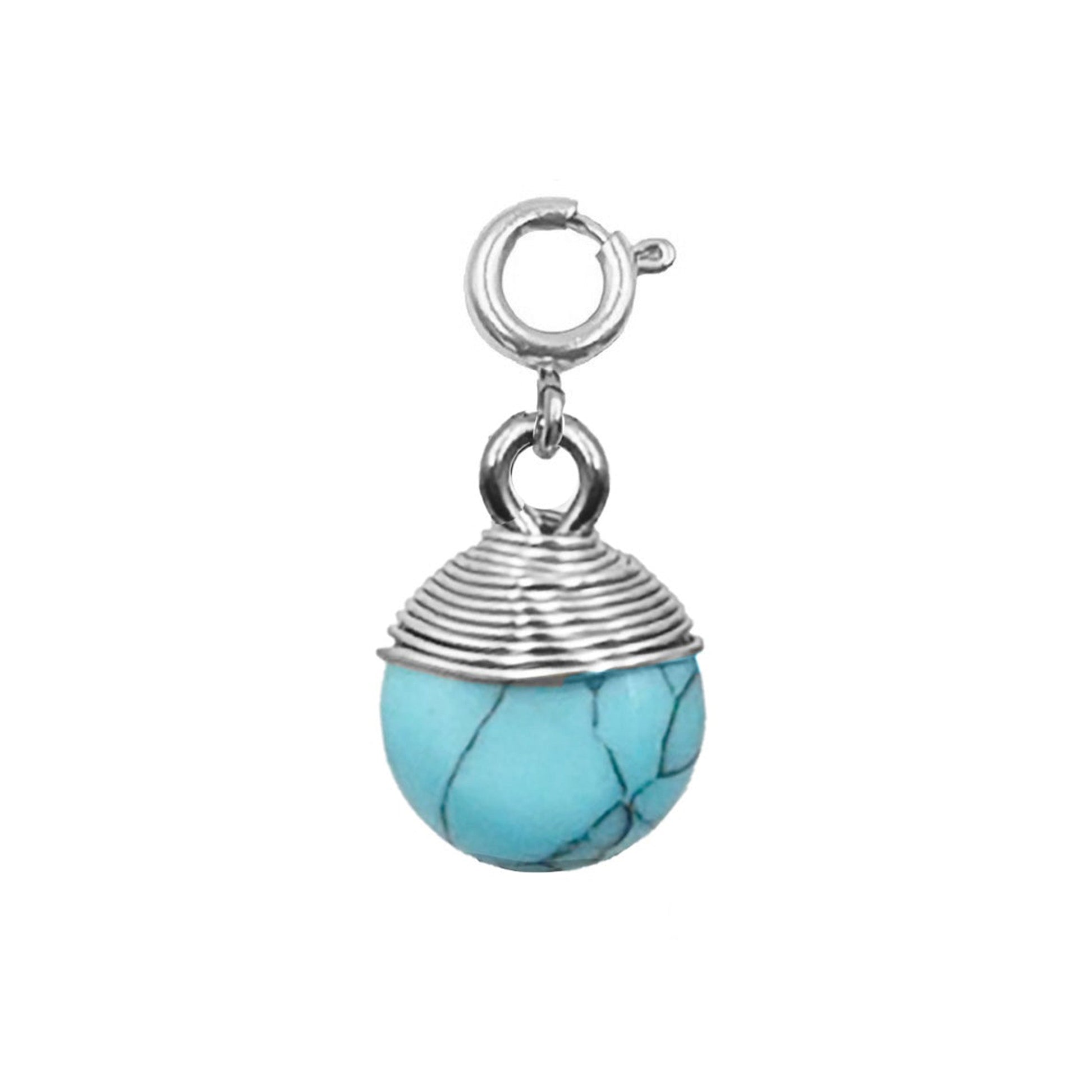 Silver And Light Blue Marble Natural Stone Crystal Gemstone Turquoise Wire Wrapped Hypoallergenic Nickel Free Charm Accessory. Custom Raw Natural Stone Accents And Designed With Love In Texas. Size 0.75 Inch Length x 0.25 Inch Width With Custom Sizing Available On Select Pieces.