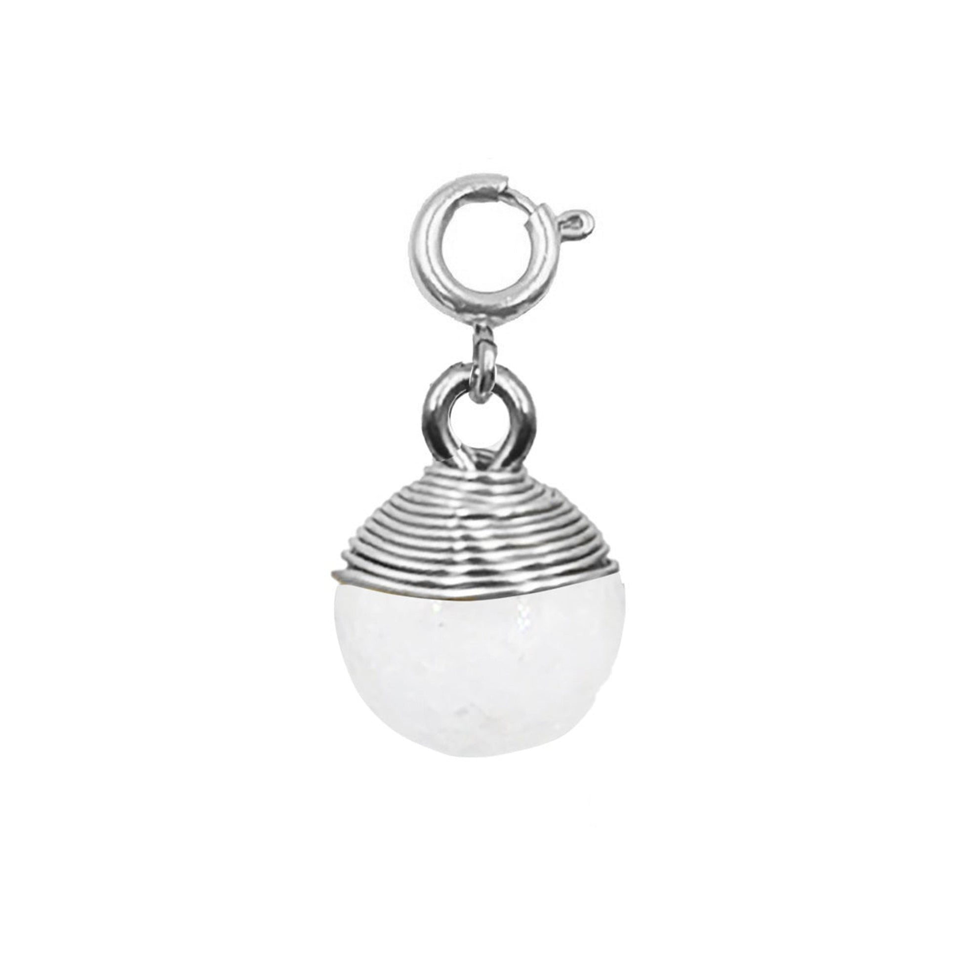 Silver And White Natural Stone Crystal Gemstone Wire Wrapped Hypoallergenic Nickel Free Charm Accessory. Custom Raw Natural Stone Accents And Designed With Love In Texas. Size 0.75 Inch Length x 0.50 Inch Width With Custom Sizing Available On Select Pieces.