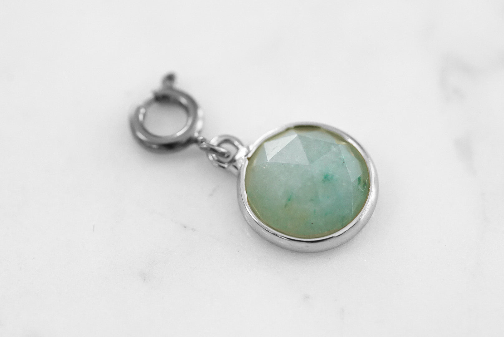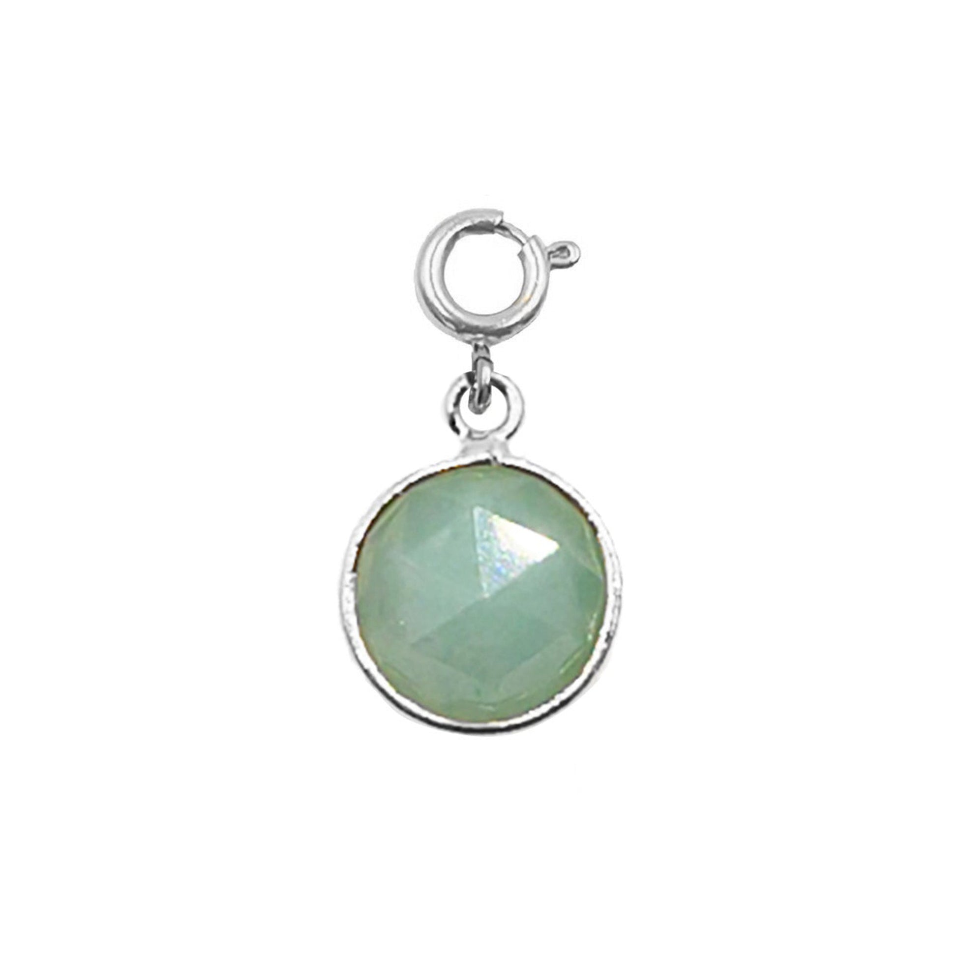 Silver And Green Circle Disc Natural Stone Crystal Gemstone Hypoallergenic Nickel Free Charm Accessory. Custom Raw Natural Stone Accents And Designed With Love In Texas. Size 0.75 Inch Length x 0.50 Inch Width With Custom Sizing Available On Select Pieces.