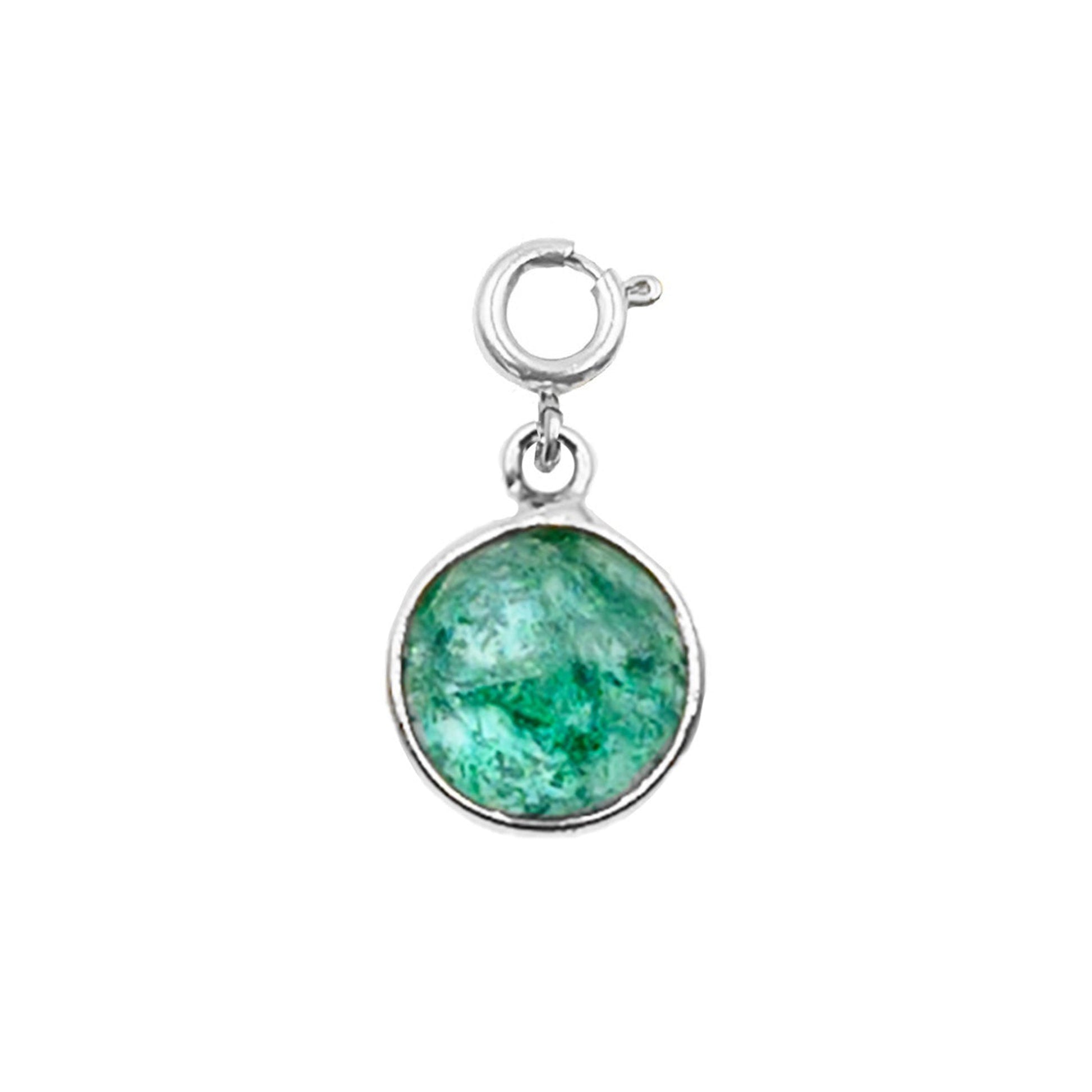 Silver And Green Circle Disc Natural Stone Crystal Gemstone Hypoallergenic Nickel Free Charm Accessory. Custom Raw Natural Stone Accents And Designed With Love In Texas. Size 0.75 Inch Length x 0.50 Inch Width With Custom Sizing Available On Select Pieces.