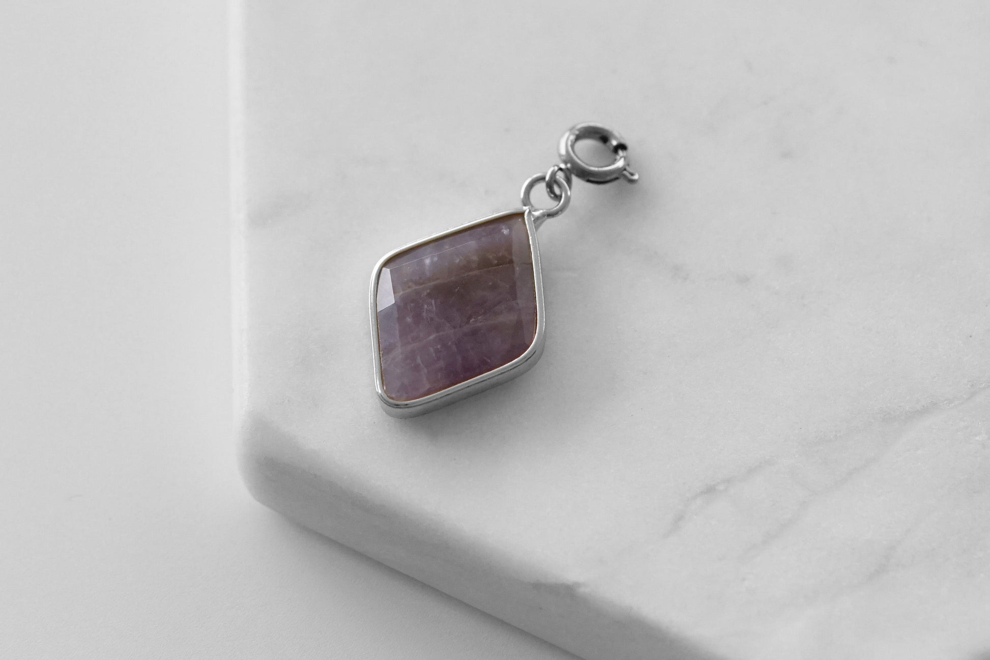 Silver And Purple Hypoallergenic Nickel Free Charm Accessory. Custom Raw Natural Stone Accents And Designed With Love In Texas. Size 1.25 Inches Length x 0.50 Inch Width With Custom Sizing Available On Select Pieces.