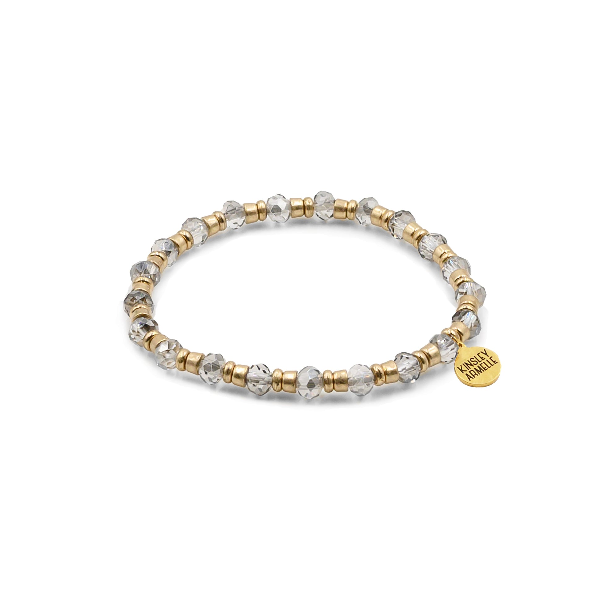 Gold And Gray Clear Faceted Hypoallergenic Nickel Free Beaded Stretch Bracelet. Custom Decorative Accent Beads Accents And Designed With Love In Texas. Size Small, Medium, Large, and Extra Large Ranging From 6.25 - 7.25 Inch Circumference With Custom Sizing Available On Select Pieces.
