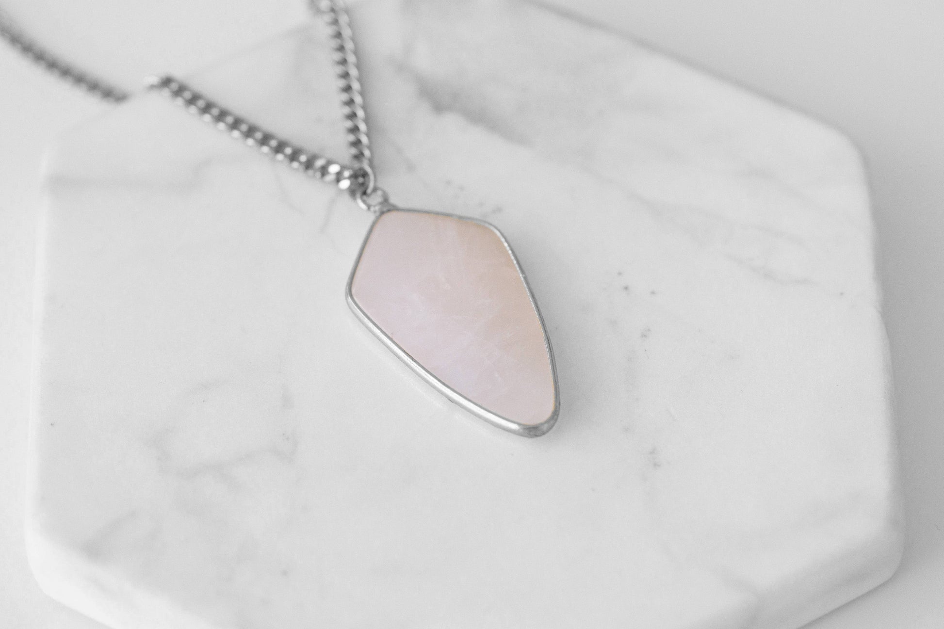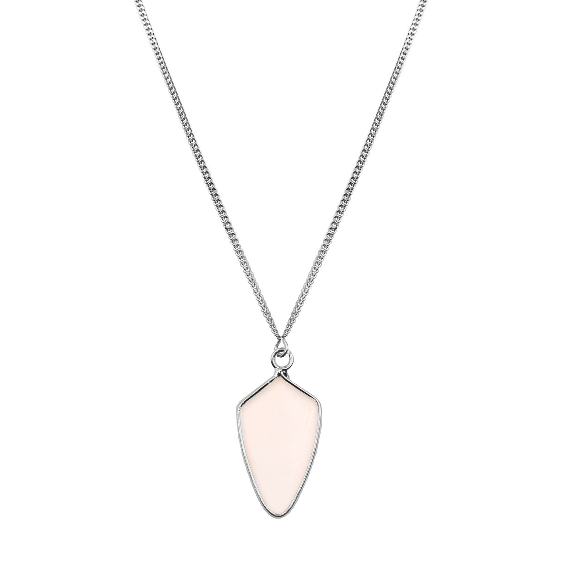 Silver And Pink Arrowhead Dangle Natural Stone Crystal Gemstone Triangular Hypoallergenic Nickel Free Pendant Necklace. Custom Druzy Raw Natural Quartz Stone Accents And Designed With Love In Texas. Size 18, 22, 26 or 32 Inch Length, Plus 3 Inch Attached Necklace Extender With Custom Sizing Available On Select Pieces.