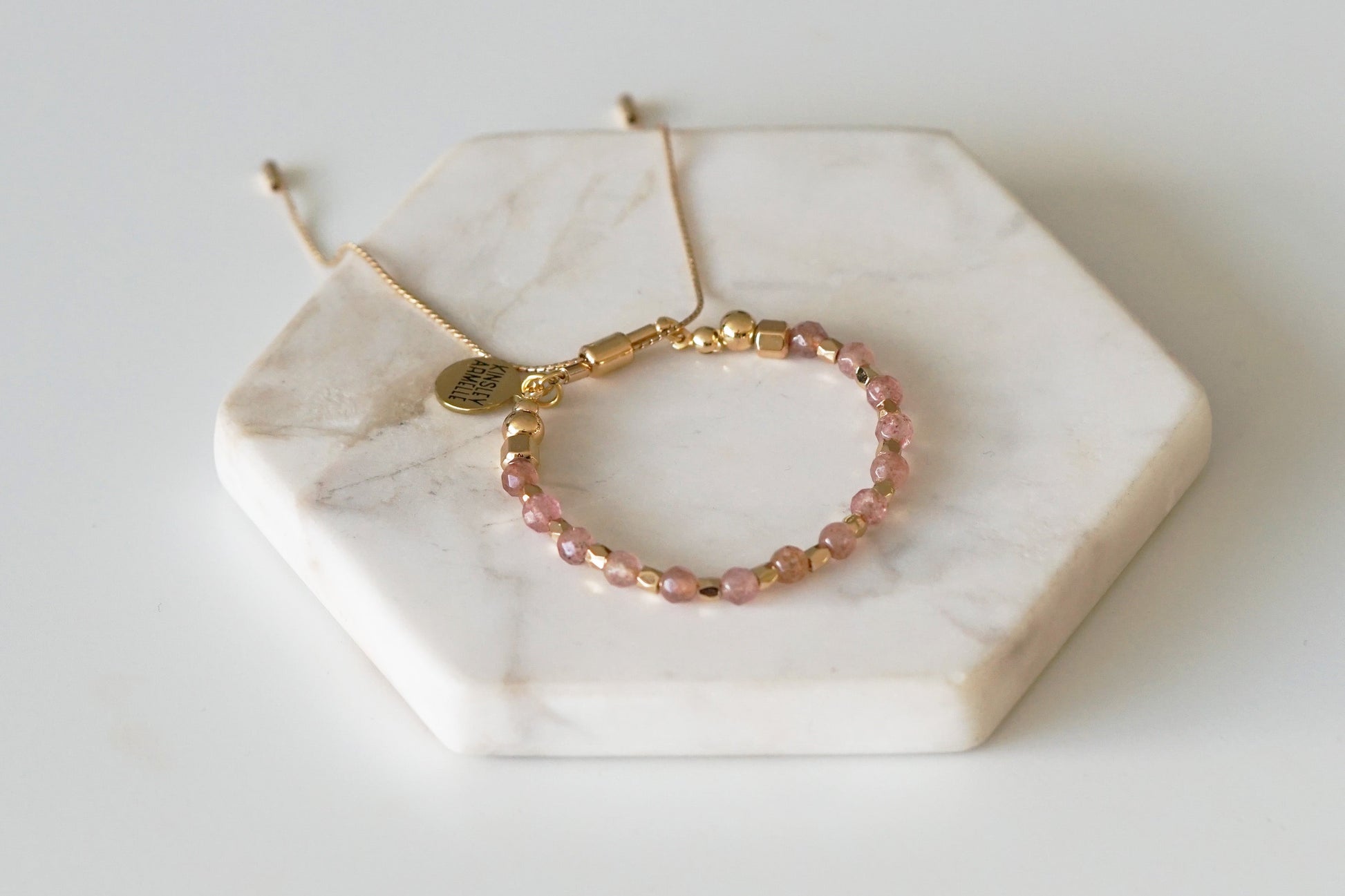 Gold And Red Bolo Sliding Clasp Bolo Sliding Knot Natural Stone Hypoallergenic Nickel Free Adjustable Bracelet. Custom Decorative Accent Beads Accents And Designed With Love In Texas. Size 5 - 9 Inch Circumference With Custom Sizing Available On Select Pieces.