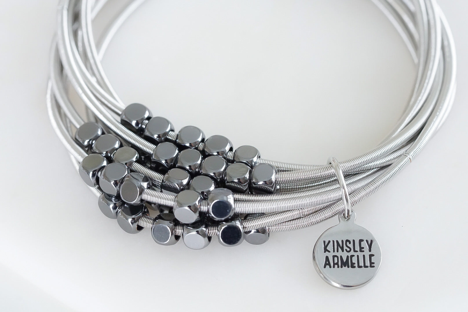 Silver And Black Cubed Faceted Multistrand Hypoallergenic Nickel Free Steel Bracelet. Custom Decorative Accent Beads Accents And Designed With Love In Texas. Size 6.5 - 8 Inch Circumference With Custom Sizing Available On Select Pieces.