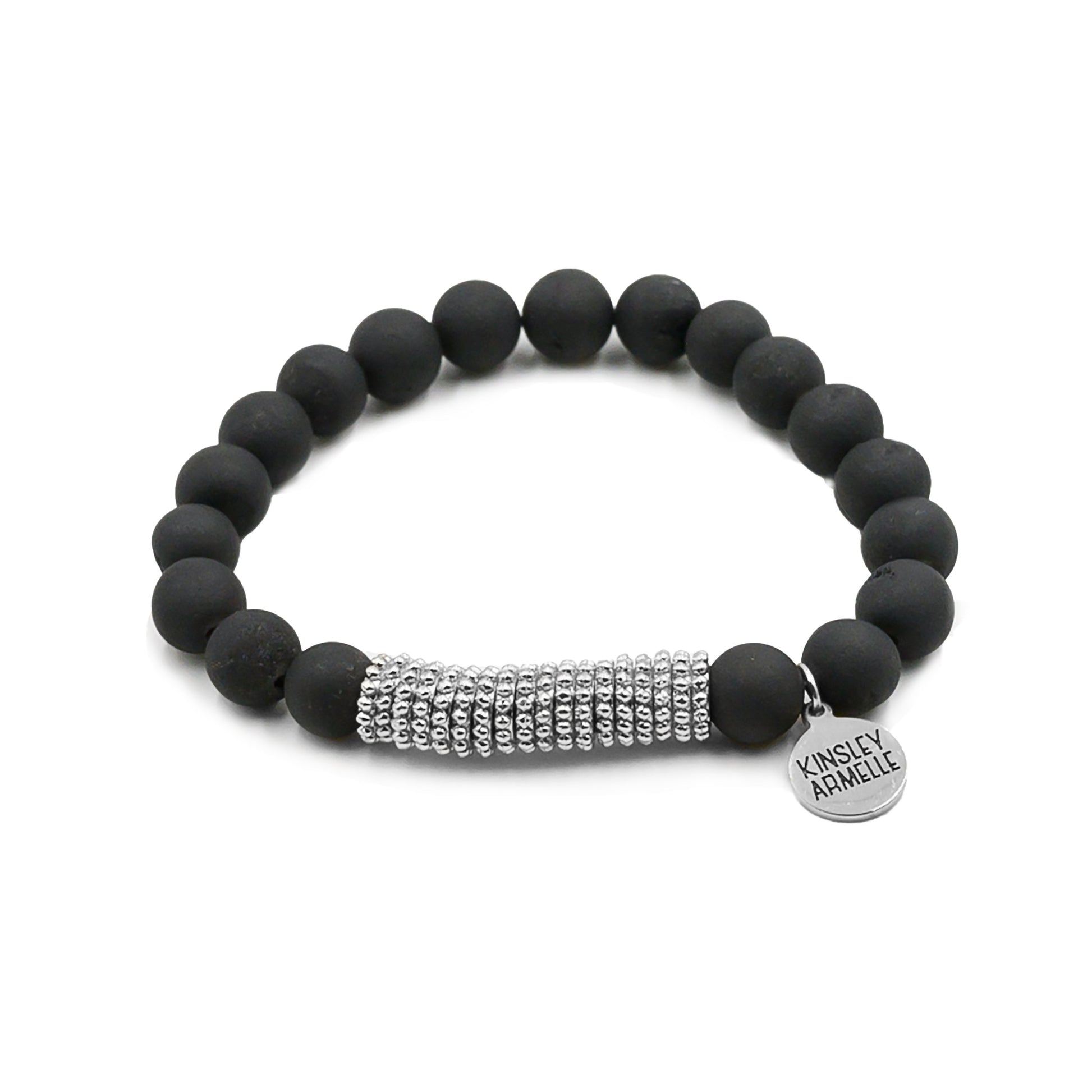 Silver And Black Disc Geode Pocks Matte Studded Hypoallergenic Nickel Free Beaded Stretch Bracelet. Custom Decorative Accent Beads Accents And Designed With Love In Texas. Size Small, Medium, Large, and Extra Large Ranging From 6.25 - 7.25 Inch Circumference With Custom Sizing Available On Select Pieces.