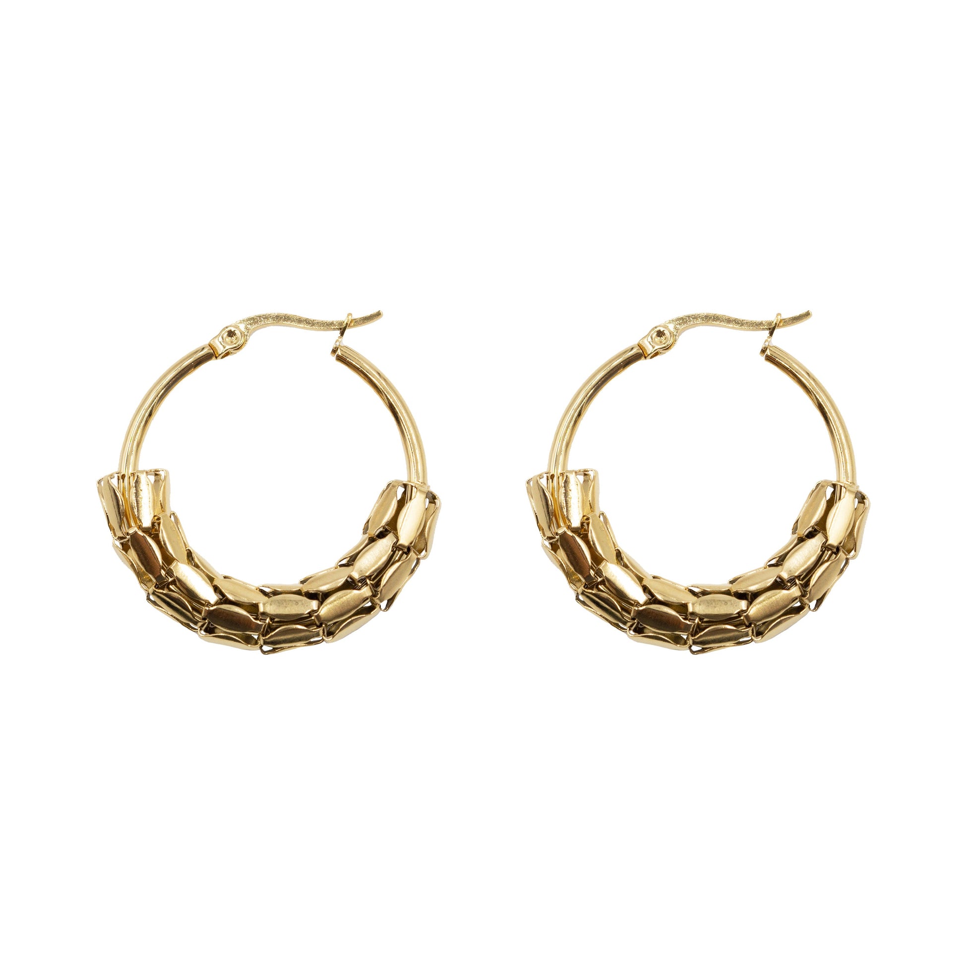 Gold Aztec Egyptian Mediumweight Hypoallergenic Nickel Free All Metal Hoop Earrings. Custom Geometric Shapes Accents And Designed With Love In Texas. Size 1 Inch Diameter With Custom Sizing Available On Select Pieces.