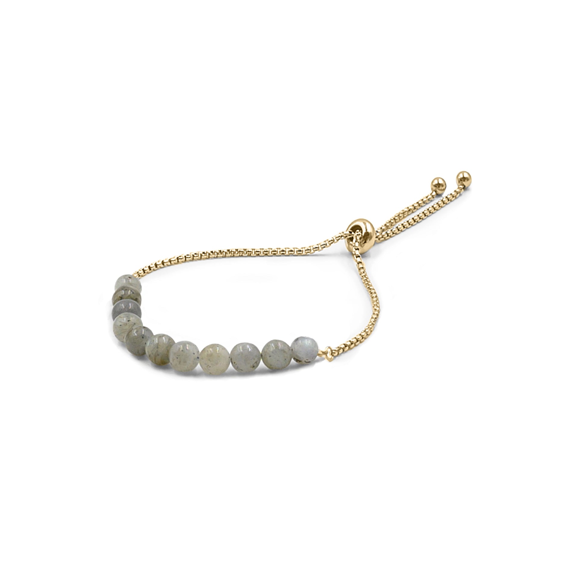 Gold And Green Bolo Sliding Clasp Bolo Sliding Knot Natural Stone Hypoallergenic Nickel Free Dainty Adjustable Bracelet. Custom Labradorite Raw Natural Stone Accents And Designed With Love In Texas. Size 1 Inch to 9 Inch Circumference With Custom Sizing Available On Select Pieces.