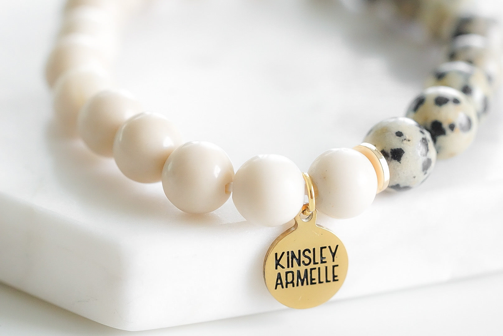 Gold And Brown Cheetah Leopard Natural Stone Two Toned Hypoallergenic Nickel Free Beaded Stretch Bracelet. Custom Dalmatian Jasper Raw Natural Stone Accents And Designed With Love In Texas. Size Small, Medium, Large, and Extra Large Ranging From 6.25 - 7.25 Inch Circumference With Custom Sizing Available On Select Pieces.