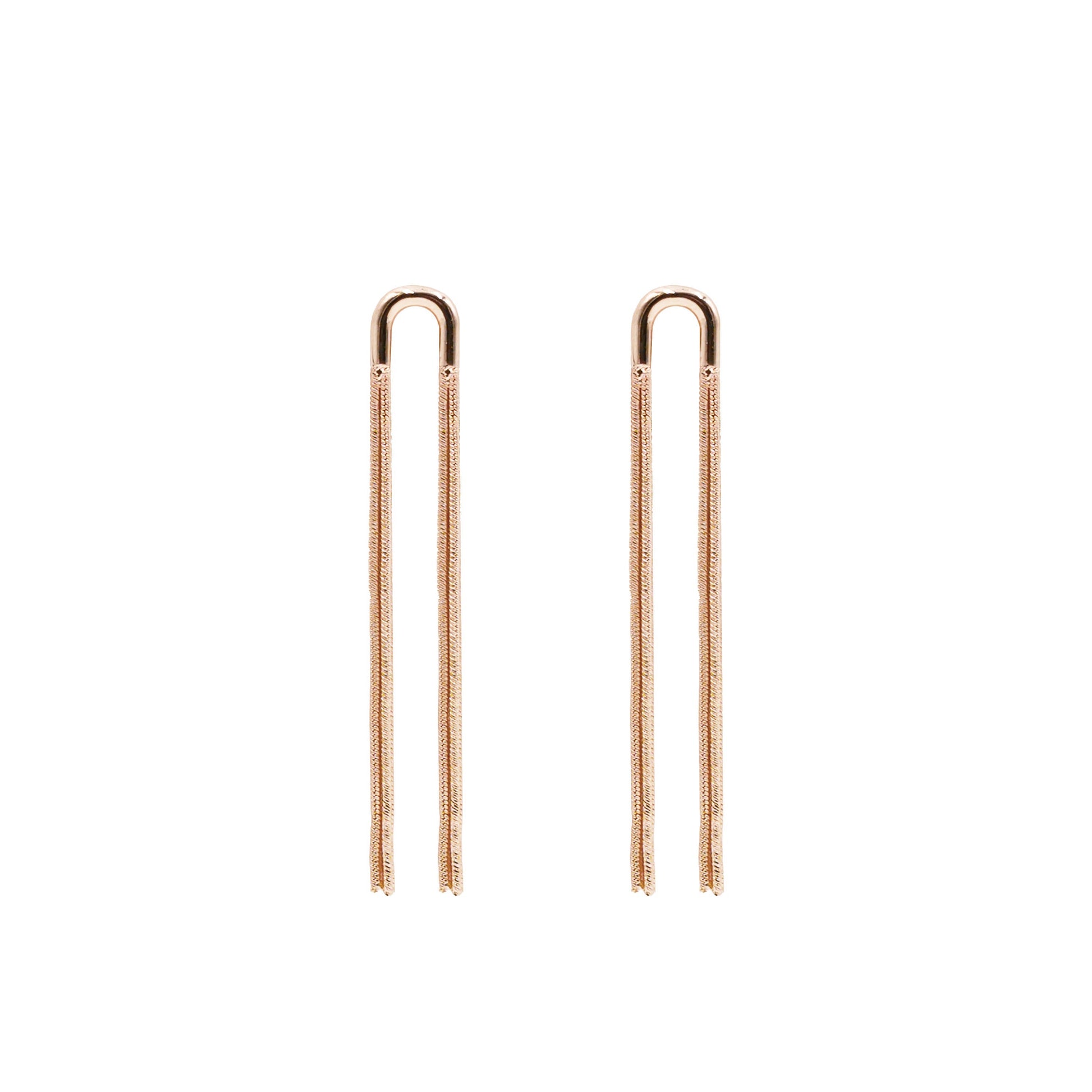 Rose Gold And Pink Chain Fringe Metal Tassel Mediumweight Hypoallergenic Nickel Free Statement Drop Earrings. Custom Chain Accents And Designed With Love In Texas. Size 0.25 Inches Width x 2.5 Inches Length With Custom Sizing Available On Select Pieces.