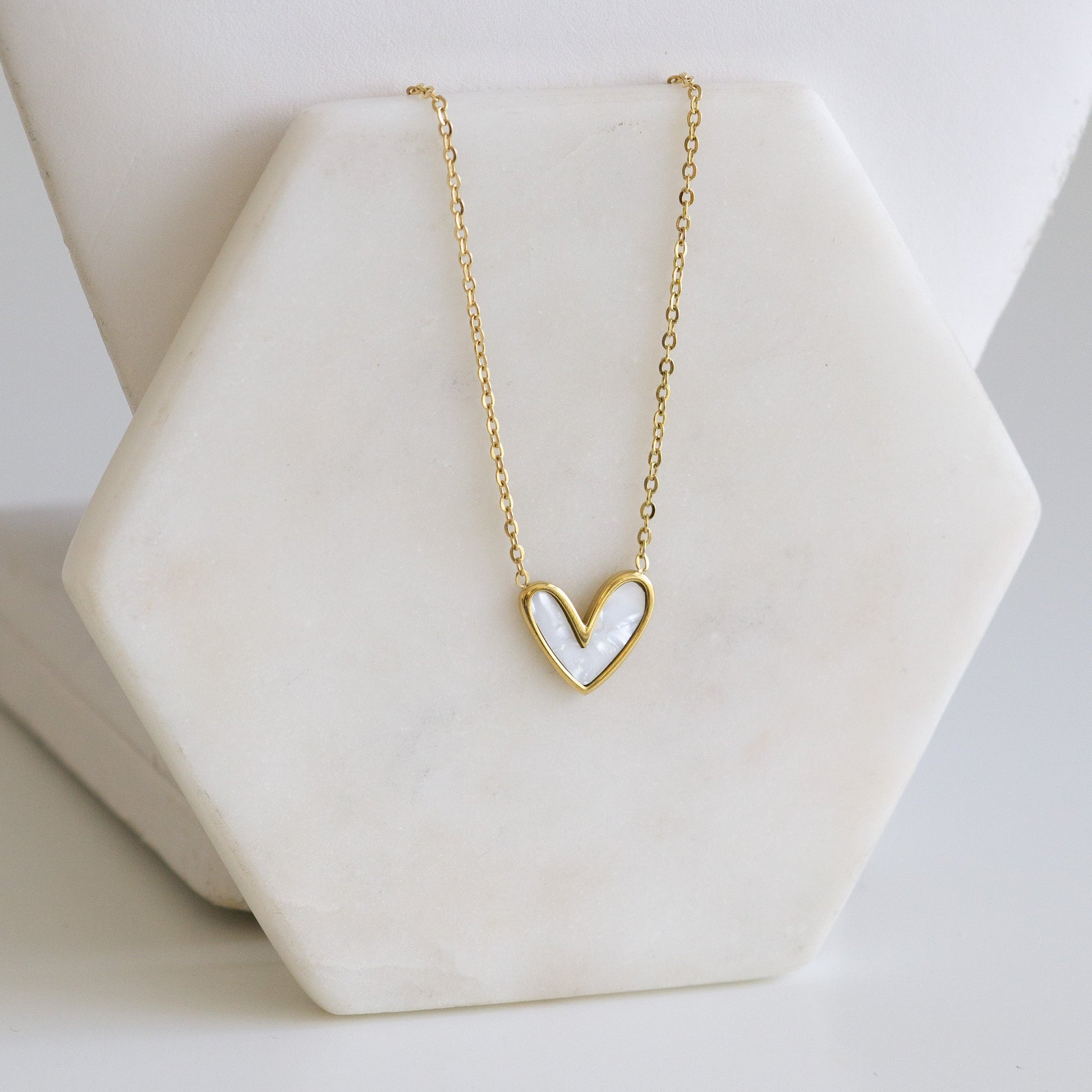 Gold Geometric Heart Shell Hypoallergenic Nickel Free All Metal Pendant Necklace. Custom Geometric Shapes Accents And Designed With Love In Texas. Size 18 Inches Length, Plus 2 Inch Attached Extender With Custom Sizing Available On Select Pieces.