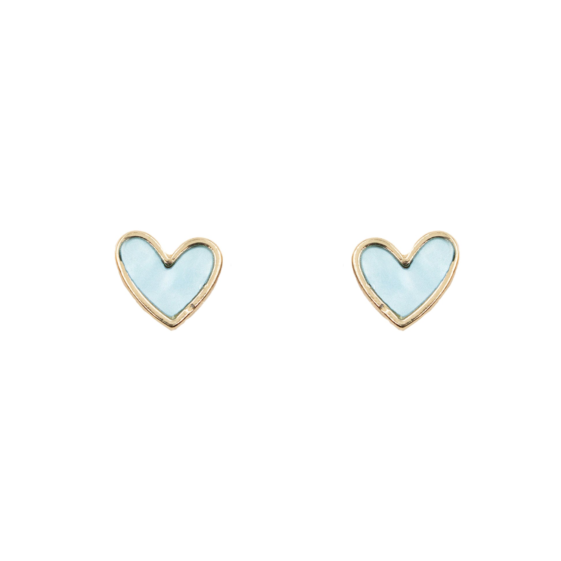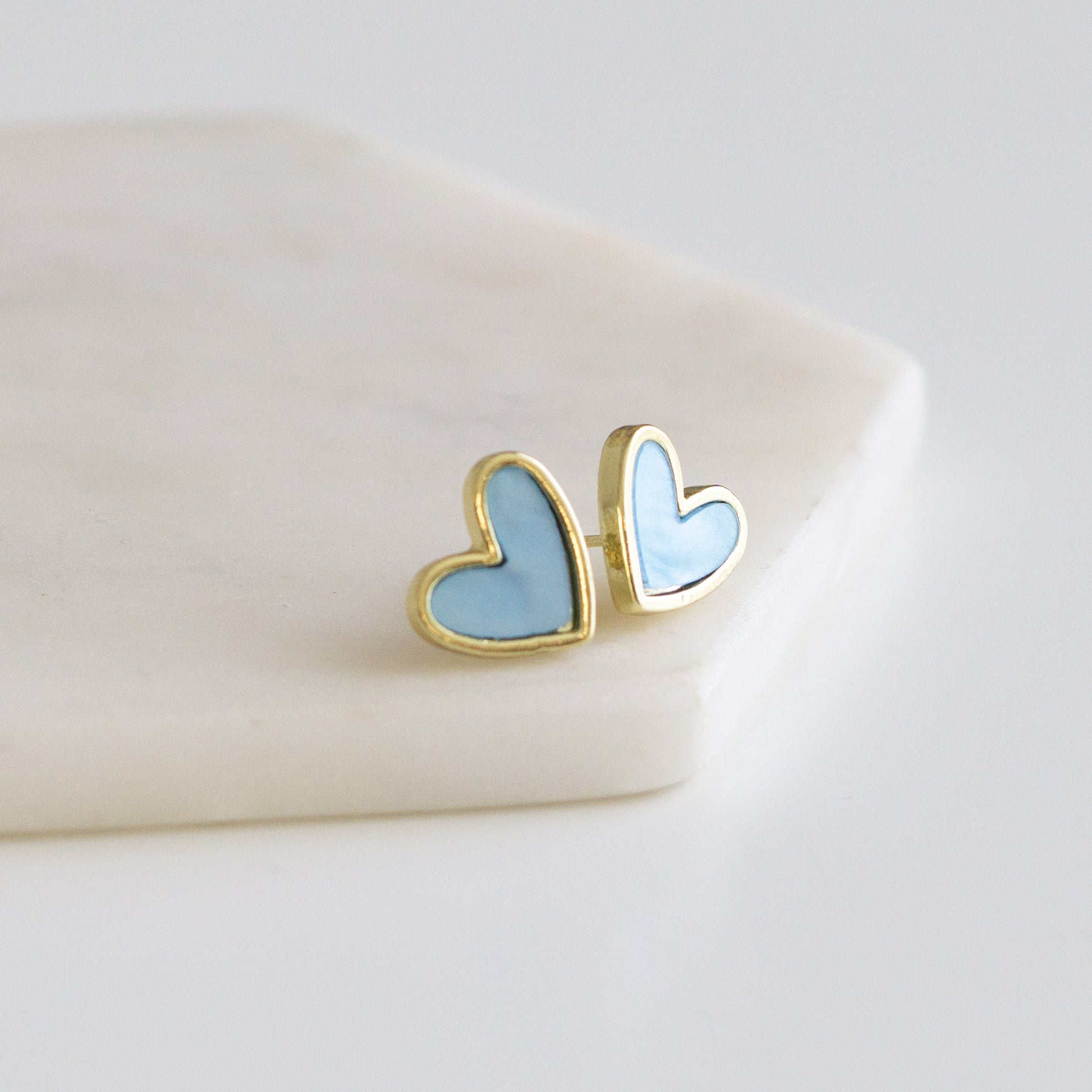 Gold And Blue Heart Featherweight Stud Earrings. Custom Geometric Shapes Accents And Designed With Love In Texas. Size 0.5 Inches Length x 0.5 Inches Width With Custom Sizing Available On Select Pieces.