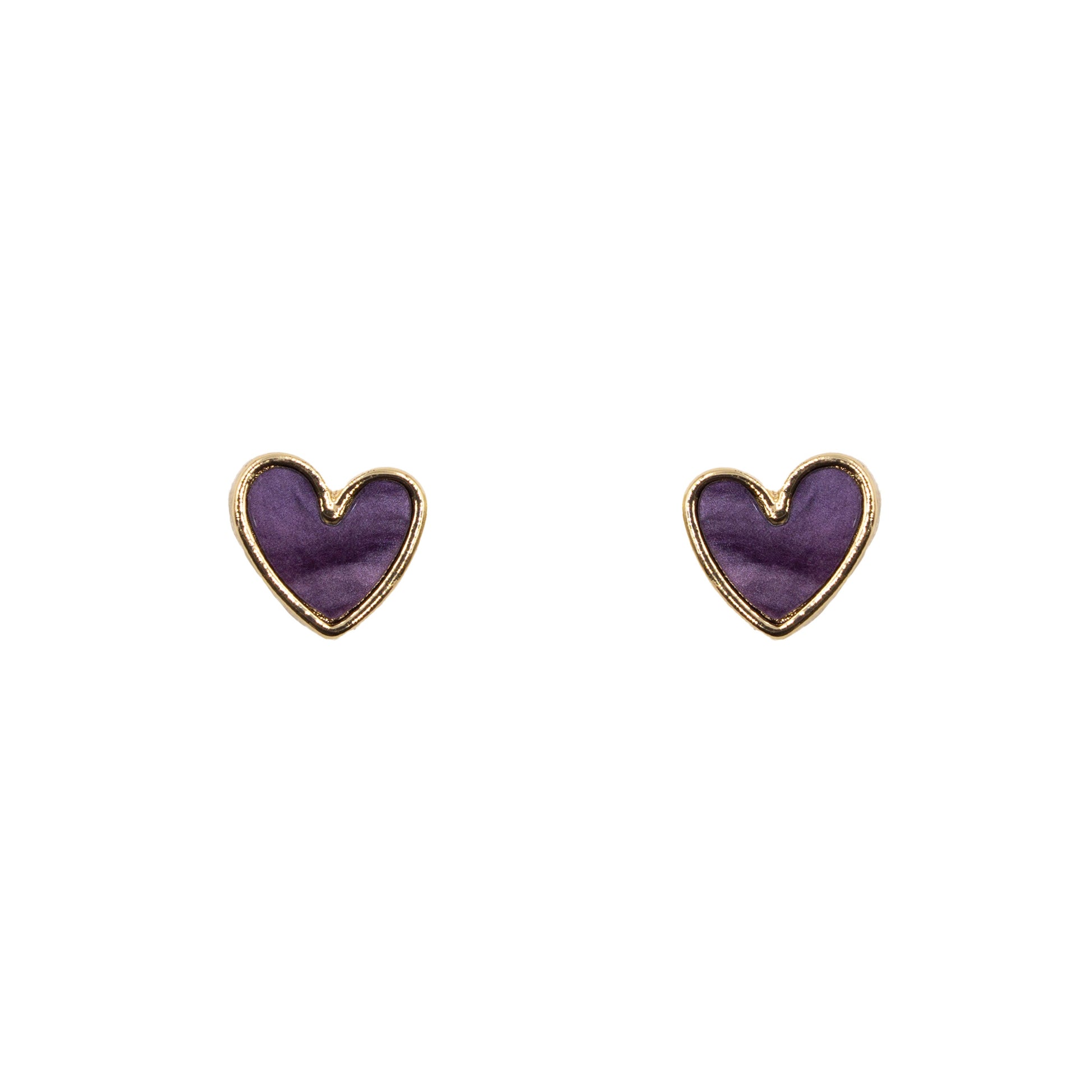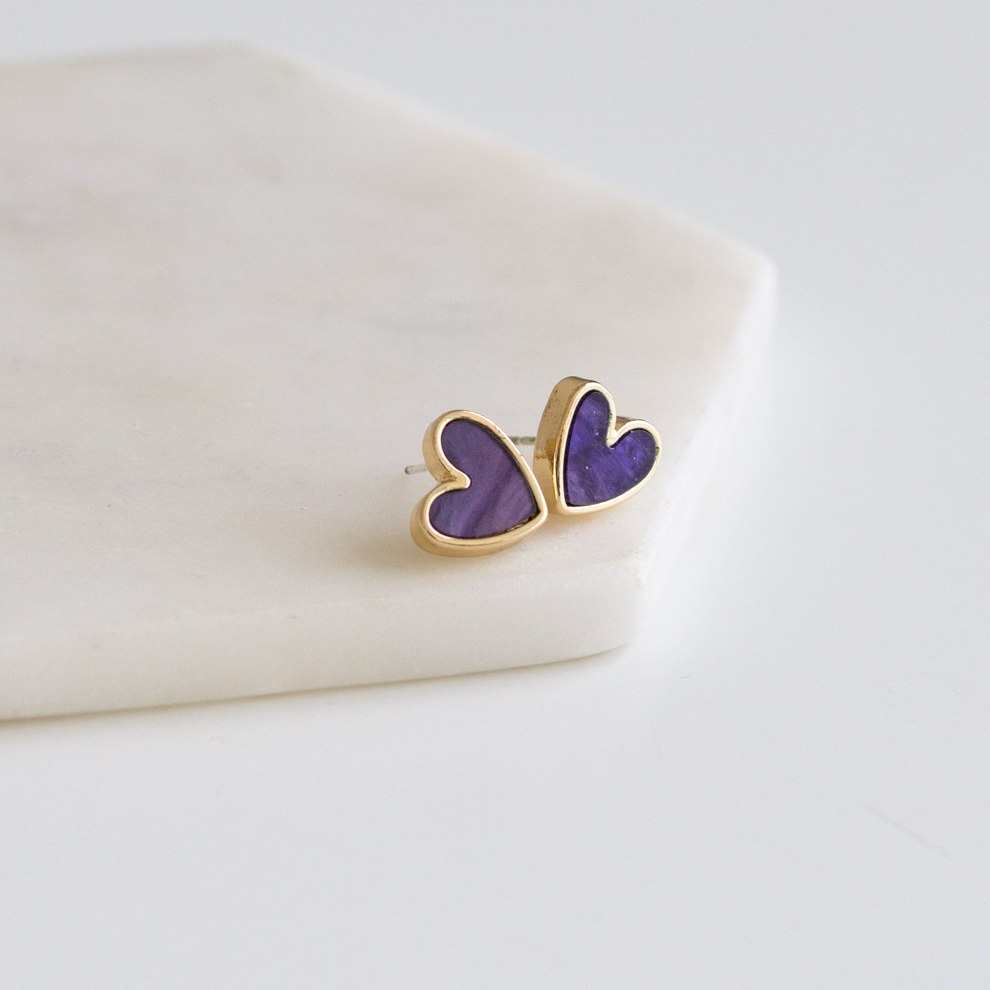Gold And Purple Heart Featherweight Stud Earrings. Custom Geometric Shapes Accents And Designed With Love In Texas. Size 0.5 Inches Width x 0.5 Inches Length With Custom Sizing Available On Select Pieces.