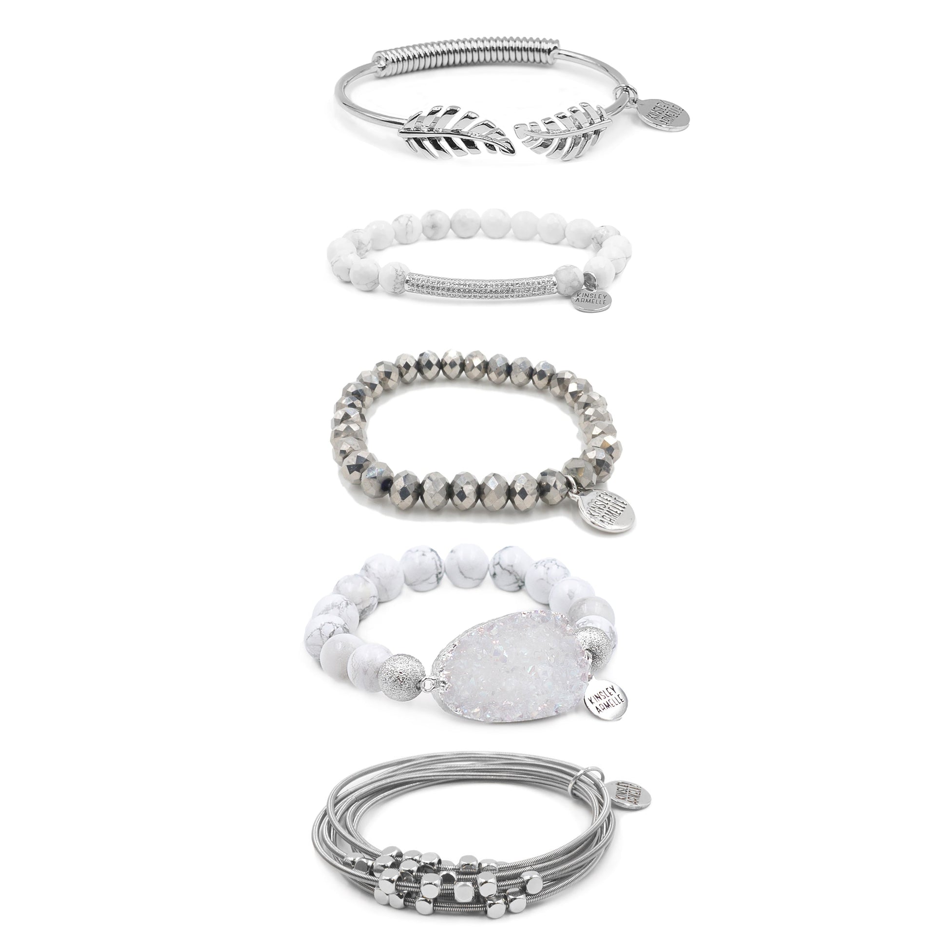 Silver And Gray Beads Cuff Druzy Leaf Feather Marble Multistrand Natural Stone Crystal Gemstone Pave Raw Hypoallergenic Nickel Free Bracelet Stack Set. Custom Druzy Raw Natural Quartz Stone Accents And Designed With Love In Texas. Size Small, Medium, Large, and Extra Large Ranging From 6.25 - 7.25 Inch Circumference With Custom Sizing Available On Select Pieces.