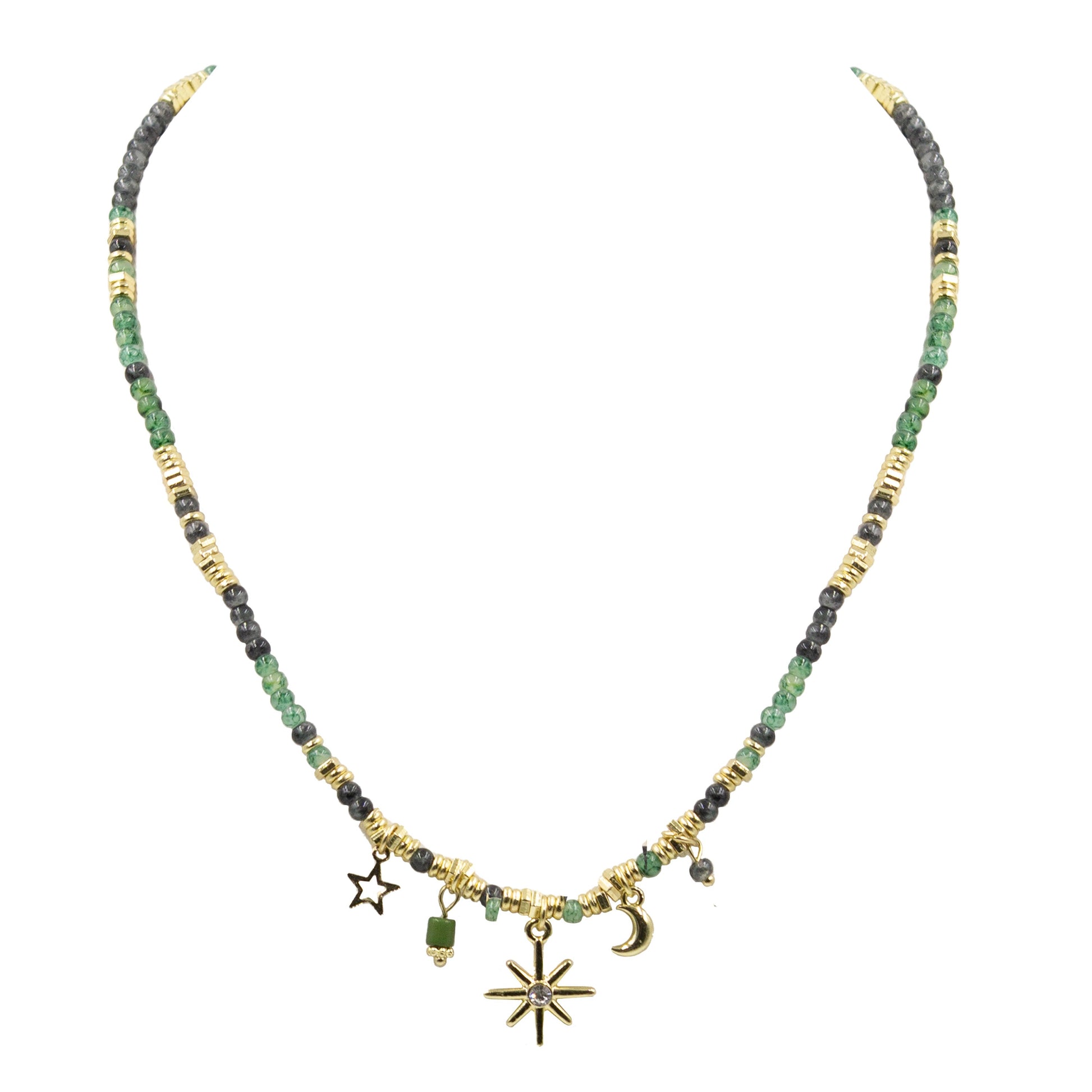 Gold And Green Blue Diamond Faceted Tropical Beaded Necklace. Custom Glass Geometric Shapes Accents And Designed With Love In Texas. Size 14 Inches Length, Plus 3 Inch Attached Extender With Custom Sizing Available On Select Pieces.