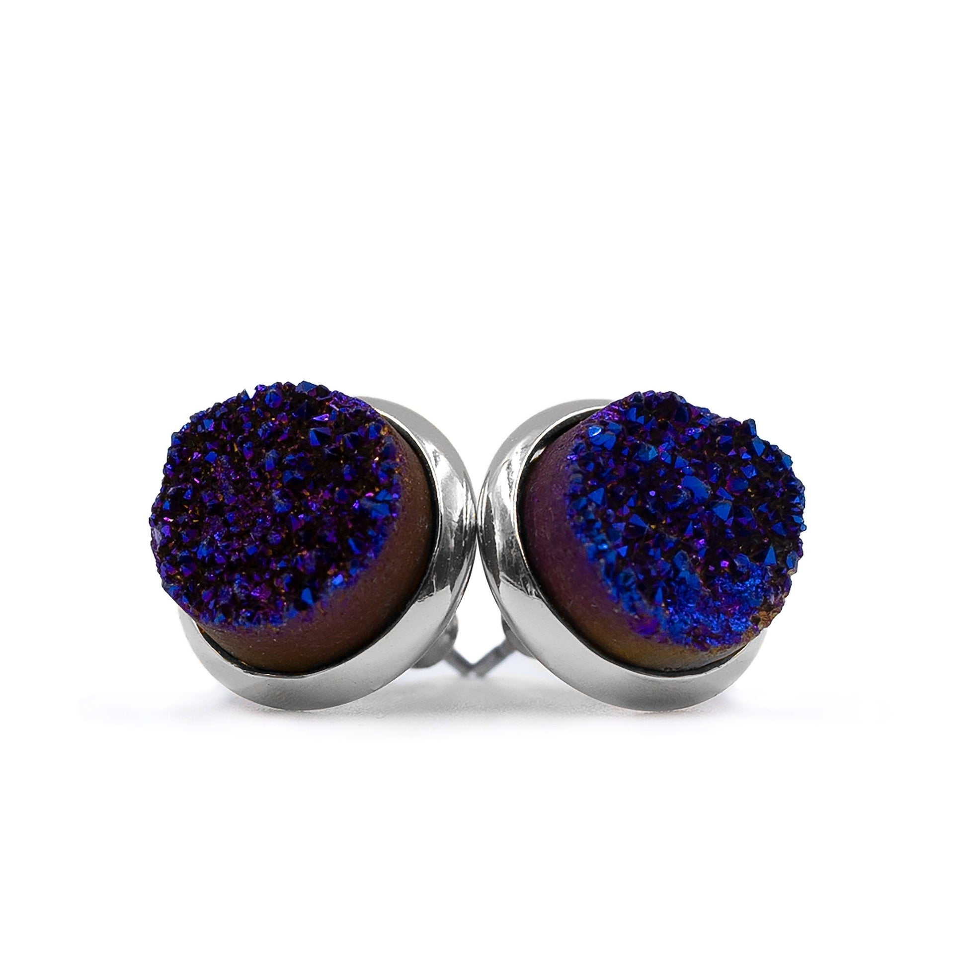 Silver And Purple Featherweight Hypoallergenic Nickel Free Stud Earrings. Custom Druzy Raw Natural Quartz Stone Accents And Designed With Love In Texas. Size 10mm Diameter With Custom Sizing Available On Select Pieces.